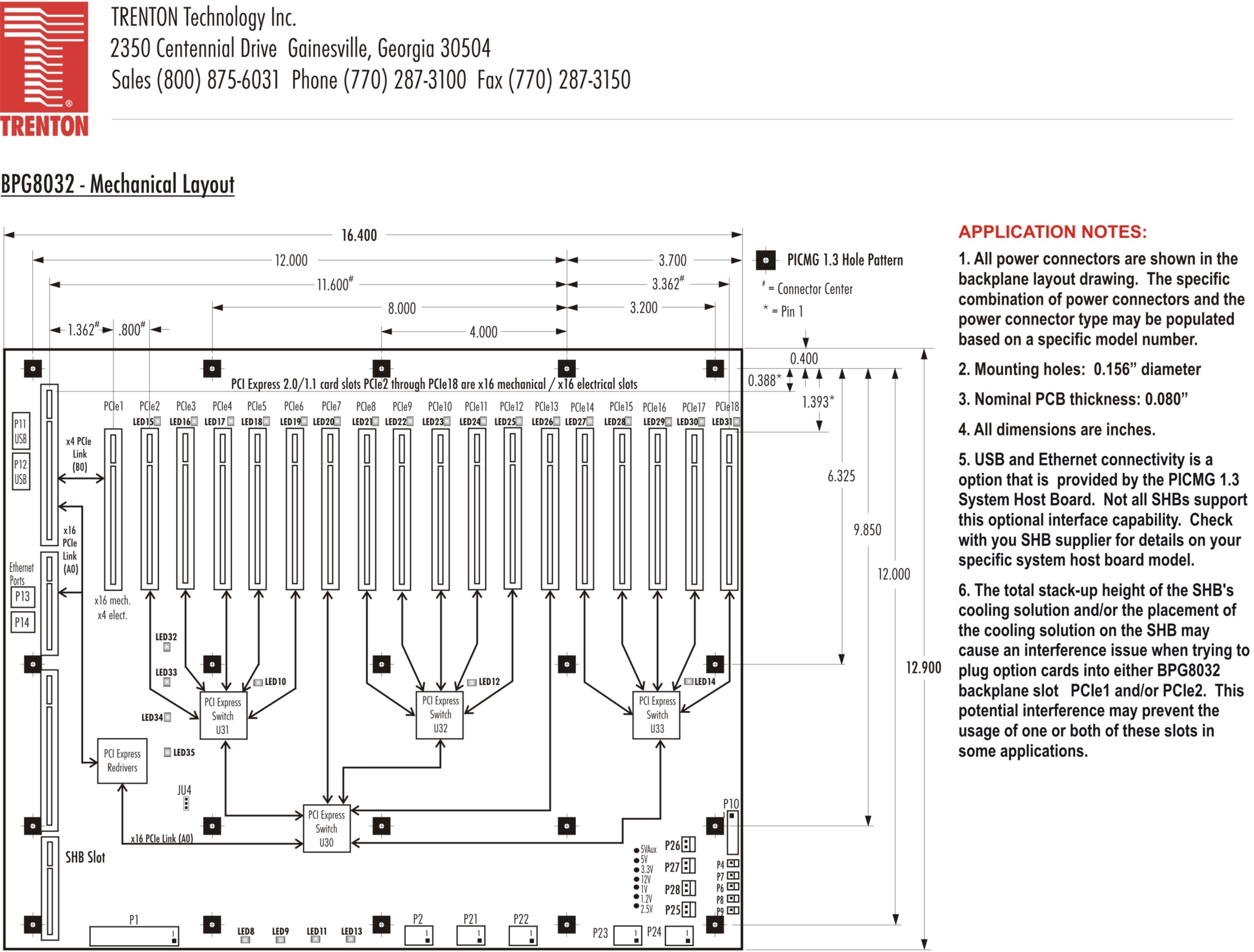 BPG8032 Backplane Downloads for BPG8032 Backplane Datasheet Data Sheet for BPG8032M used in the TVC5401 Layout Drawing Block Diagram Jumpers, Connectors and PCIe Link Status LEDs