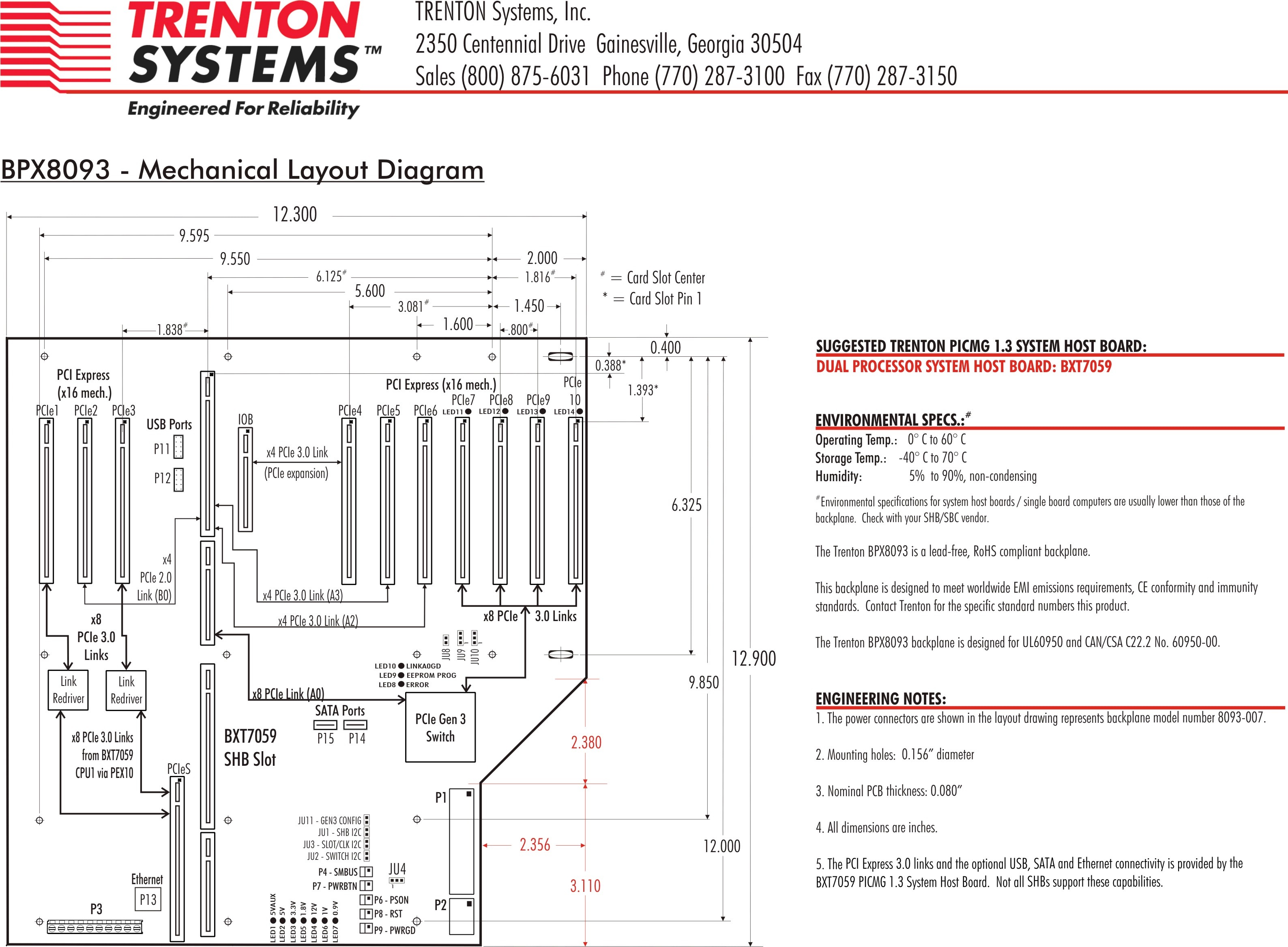 BPX8093 Backplane Downloads for BPX8093 Backplane Data Sheet Layout Drawing Block Diagram Jumpers, Connectors and PCIe Link Status LEDs