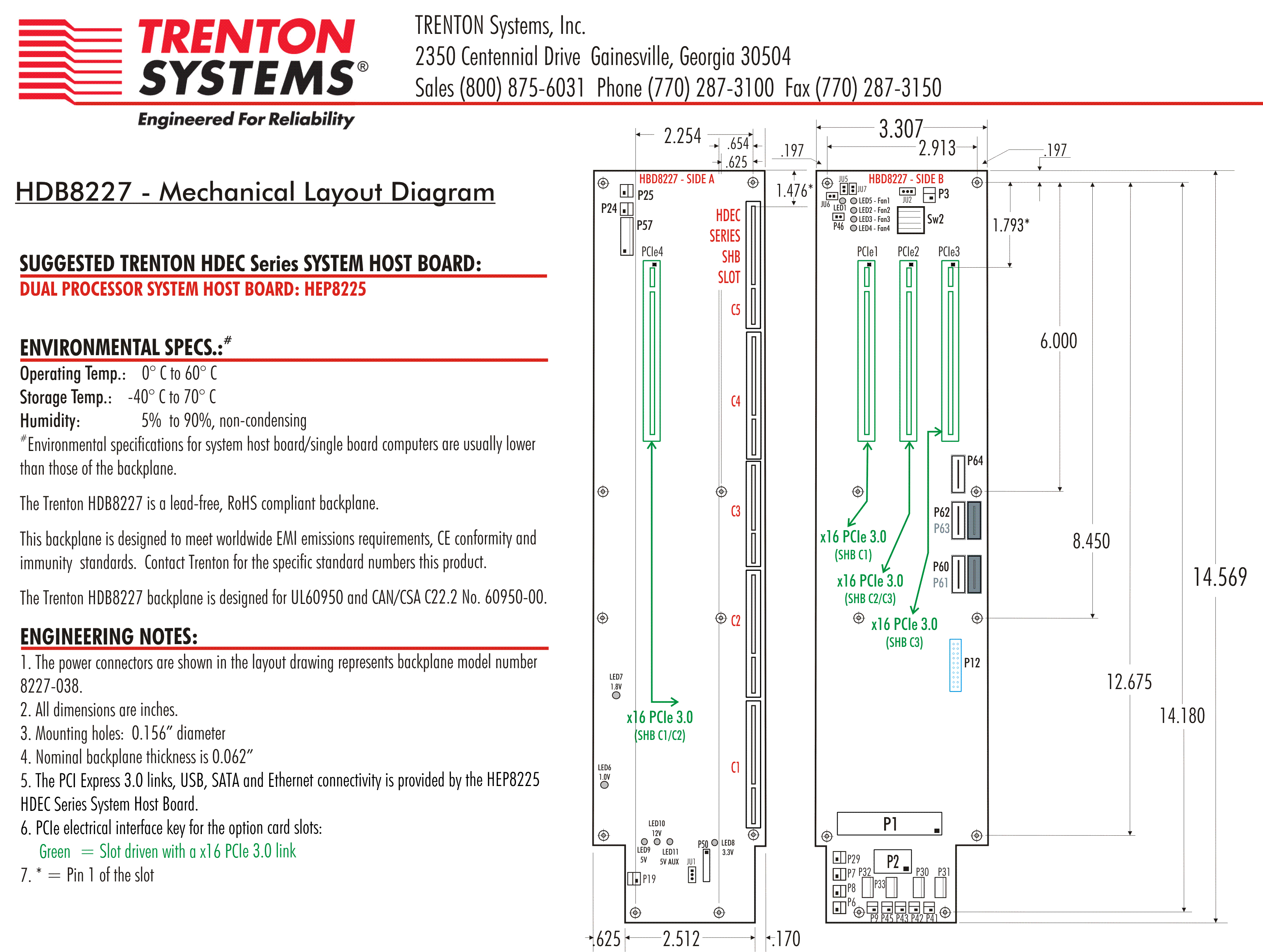 HDB8227 Backplane Downloads for HDB8227 Backplane Datasheet Layout Drawing Block Diagram Jumpers, Connectors and Status LEDs HDEC Series Backplane Manual